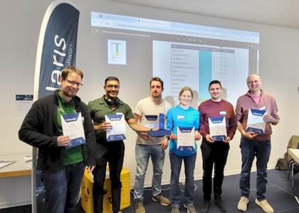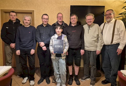 ![]() Sieger-Team „Mathematiker” mit Dr. Sebastian Lämmel, Rajmadan Lakshmanan, Lukas Lüdecke, Kathrin Brand, Dminik Wunderlich und Prof. Vladimir Shikhman (v.l.n.r.). ![]() Sieger der Einzelwertung: Thomas Oertel. Der Geschäftsführer der axilaris GmbH Thomas Schumann begrüßte die Freunde des Schachs aus 19 Betrieben und Branchen. Das Event wurde als Einzelturnier im Schweizer System durchgeführt. Die besten vier eines jeden Teams kamen mit ihrer Platzziffernsumme in die Mannschaftwertung. Gewertet wurden die Firmen- oder Branchenvertretungen in den Kategorien A (mit 2 Aktiven bzw. DWZ > 1500), Kategorie B (mit 1 Aktiven) und Kategorie C (ohne Aktive). Das Einzelturnier aller Teilnehmer gewann der ehemalige USG-Spieler Thomas Oertel. Er hatte in den Jahren der Schachabstinenz offenbar nichts verlernt und gewann alle Partien. In der Hauptkategorie der Teamwertung belegten die „Mathematiker” der TU Chemnitz wie im Vorjahr den ersten Platz und nahmen den Siegerpokal in Empfang. Die Kategorie B gewannen die Medieninformatiker alias „Checkers”. In der Kategorie C der Nichtaktiven sicherten sich „Die Turbo-Taktiker” der Porsche Leipzig GmbH den Siegerpokal und wiederholten ebenfalls ihren Erfolg aus dem vorjährigen Turnier. Die Wettkämpfe fanden in einem angenehmen Ambiente statt und wurden durch lebhafte und interessante Gespräche beim Pausensnack im axilarium bereichert. Der FIDE-Schiedsrichter André Martin (Präsident des Schachverbandes Sachsen) leitete das Turnier umsichtig und gab Einblicke in das Regelwerk des Schachsports. Aufgrund der großen Teilnehmerzahl wurde er von Schachfreund Andreas Schulze tatkräftig unterstützt. Frau Sandy Sacher und die Mitarbeiter der axilaris GmbH ließen die Veranstaltung auch zu einem schachlich-kulinarischen Höhepunkt werden. Die axilaris GmbH und die „Eiche” wollen das Schachmatt-Firmenturnier als „Schach-Wirtschaftsgipfel” auch in den Folgejahren veranstalten und zur Tradition werden lassen. Firmenteams oder Einzelteilnehmer können sich auf www.schachmatt-chemnitz.de über die Ergebnisse informieren - oder auf schach.sv-eiche.de. Fragen werden gerne über schachmatt.axilaris.de beantwortet.