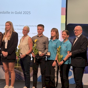 ![]() Jürgen Kyas neben dem Oberbürgermeister Sven Schulze. ![]() Paula und Laura Czäczine neben dem Oberbürgermeister. Bei dieser feierlichen Veranstaltung erhielt auch die „Eiche” Jürgen Kyas die Goldmedaille für seinen Erfolg bei der Seniorenweltmeisterschaft 65+ im Februar in Prag, wo er mit dem Team Saxonia die Bronzemedaille gewann. Ebenfalls eine Goldmedaille bei den SPORTS-UNITED-Awards 2025 erhielten die Aufbau-Mädchen, vertreten durch Paula und Laura Czäczine für den Deutschen Meistertitel U16 w. Diese Veranstaltung fand viel Anklang in der Sportszene der Stadt. Der Stadtsportbund erwägt eine Fortsetzung über das Kulturhauptstadtjahr hinaus. |