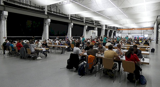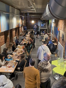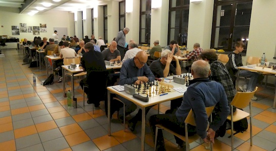 ![]() Blick in den sehr gut gefüllten Turniersaal. Aufgrund des Turniermodus (Schweizer System) sind in einer Auftaktrunde die Favoritenrollen aller Bretter per se klar verteilt, und obwohl die Resultate auch diesmal entsprechend ausfielen, täuschten sie teils deutlich über so manch knappen Spielausgang hinweg. Den zweifellos knappsten, wie auch spätesten Sieg, errang dabei der Vorjahresdritte Martin Kapp über den großartig kämpfenden, erst 14-Jährigen Silas Uhlig, der in seiner ersten OCSM-Partie überhaupt in nahezu gleichwertiger Stellung um 22.39 Uhr (!) Bruchteile von Sekunden die Uhr zu spät drückte und so durch ZÜ verlor. Aber auch der vereinslose Frank Hoffmann oder die weiteren Debütanten Lino Frey und Paul Reinhard leisteten ungleich mehr Widerstand, als es den jeweils klar favorisierten Frank Schröder, Markus Gößler bzw. Rainer Kutscha lieb sein konnte und kratzten gleichfalls am Remis. Eine Ausnahme von der Regel gab es dennoch. Ausgerechnet der Älteste im Feld, der 85 (!)-jährige Bernd Wollmann vom Glauchauer SC 1973, vermochte es, dem zuvor als Bestem Senior der OCSM2425 gewürdigten Volkmar Brand einen halben Zähler abzuknöpfen. Schon in knapp 2 Wochen geht es weiter. Dann stehen u.a. solch interessante Paarungen wie Li - Gößler oder Kapp, M. - Friedland auf dem Programm. Noch bis Mai nächsten Jahres wird in insgesamt 9 Runden der neue Stadtmeister ermittelt. Sollte Gößler die erneute Titelverteidigung gelingen, würde er das Turnier als erster Spieler seit dem legendären Gerd Lorenz vor 23 Jahren ein drittes Mal in Folge gewonnen haben - und damit den Wanderpokal für alle Zeit behalten dürfen! Die vier weiteren Ex-Stadtmeister im Feld, Stanislav Azimov, Manfred Friedland (beide USG), Matthias Hörr (SK König Plauen), Birger Watzke (SZ Elstertal-Langenberg) und womöglich der ein oder andere mehr werden das sicherlich verhindern wollen ... |