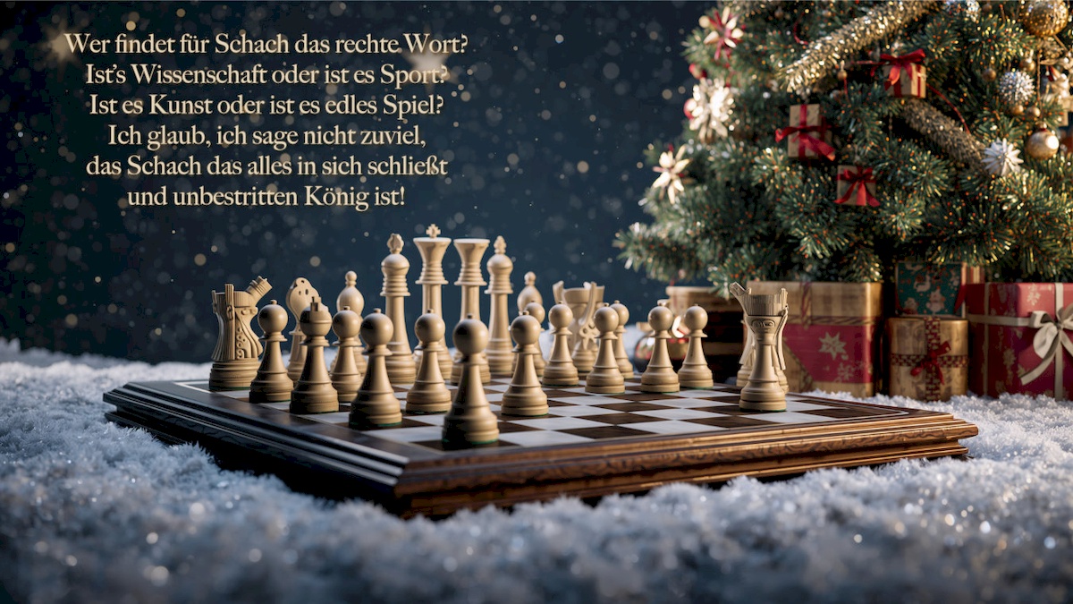 Liebe Freunde des Schachspiels, Ich wünsche Euch für das Weihnachtsfest viele Stunden der Geborgenheit und Freude im Kreise eurer Familien. Der Rückblick auf das Jahr fällt schwer, es gab sehr viele schöne Momente in den Vereinen und im Schachleben der Stadt Chemnitz. Das Highlight 1. Bundesliga unserer CSC-Schachmädels, das Firmenschachturnier, das Simultan mit Elisabeth Pähtz, Schach Open Air auf dem Rosenhof, das Chemnitzer Turm Open, die Präsenz unserer Männerteams in der Oberliga sind nur wenige weitere Eckpunkte des Jahres gewesen. Nicht unerwähnt sollen natürlich die Veranstaltungen unseres Verbandes sein, stetig steigende Teilnehmerzahlen bei der Chemnitzer Stadtmeisterschaft, den Blitz-Grand-Prix-Serien und der Verbandsliga sind Beweis für das große Interesse am Schachspielen. Ein großer Dank an alle Organisatoren, Mitstreiter und Helfer, ohne diese Bereitschaft fürs Ehrenamt gäbe es das alles nicht. Für das neue Jahr 2026 wünsche ich allen viel Gesundheit, Glück, Zufriedenheit und Mut, Neues zu wagen. Freuen wir uns auf ein erfolgreiches Schachjahr 2026.